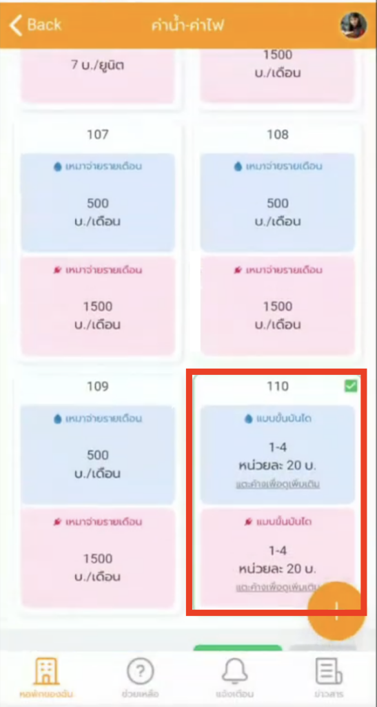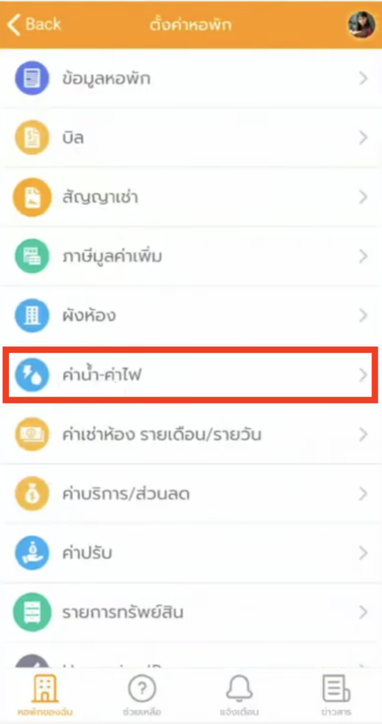 4. เลือกรูปแบบวิธีคิดค่าน้ำ/ค่าไฟ ของหอพัก