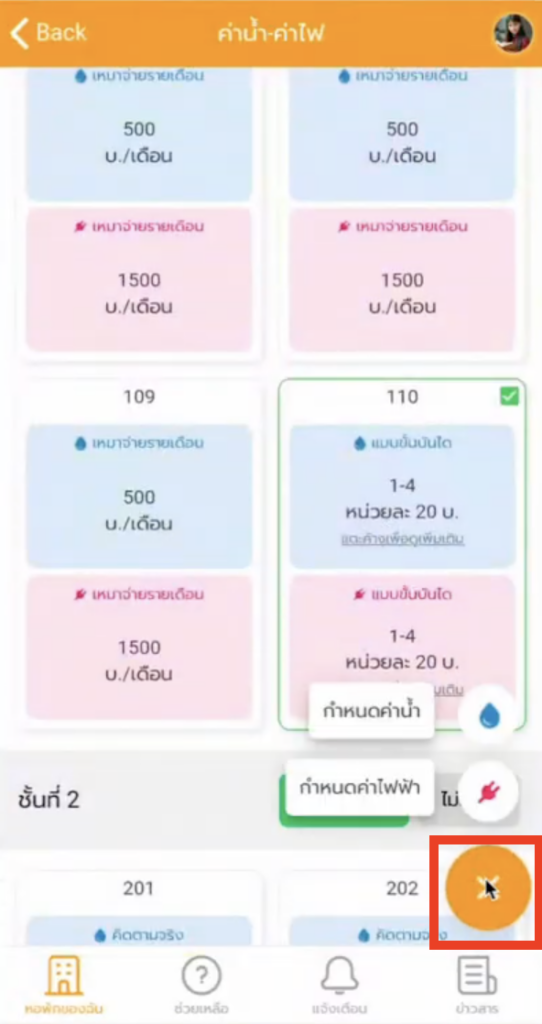 3. กดปุ่ม ” กำหนดค่าน้ำ/ค่าไฟ “