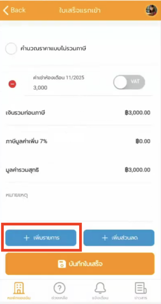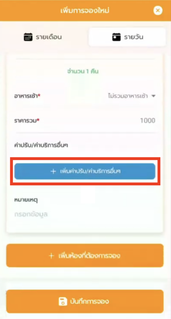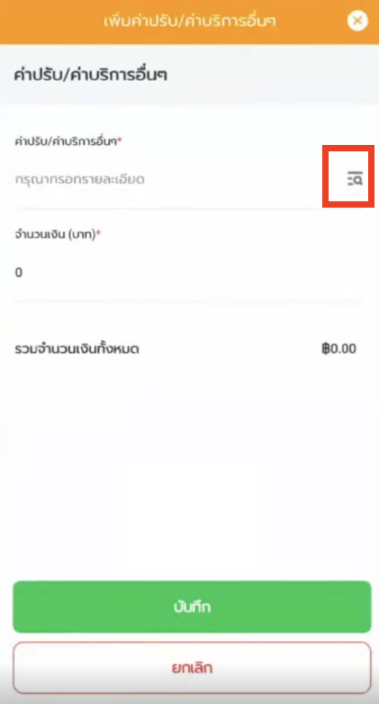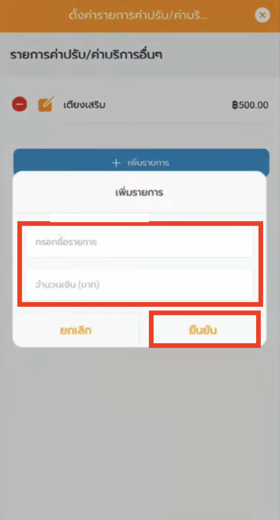 5. กดปุ่ม +เพิ่มค่าปรับ/ค่าบริการอื่นๆ