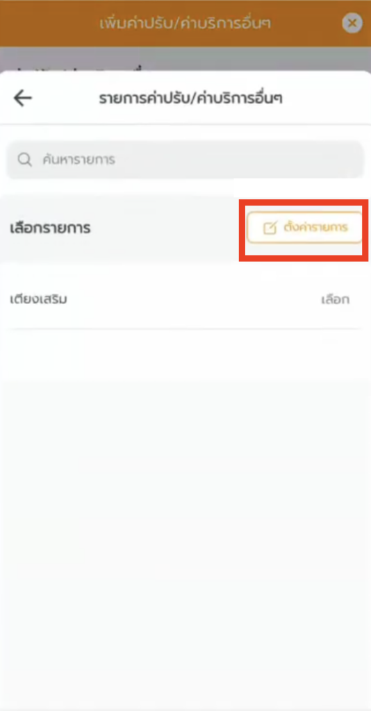 7. กดปุ่ม “+ เพิ่มรายการ” เพื่อกรอกชื่อรายการที่ต้องการตั้งค่า