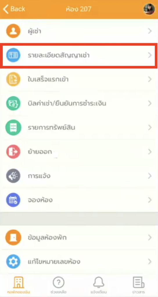 - กดปุ่ม รายละเอียดสัญญาเช่า