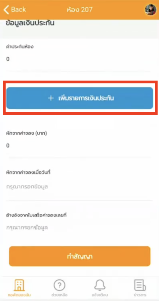 4. กดปุ่ม “+เพิ่มรายการเงินประกัน”