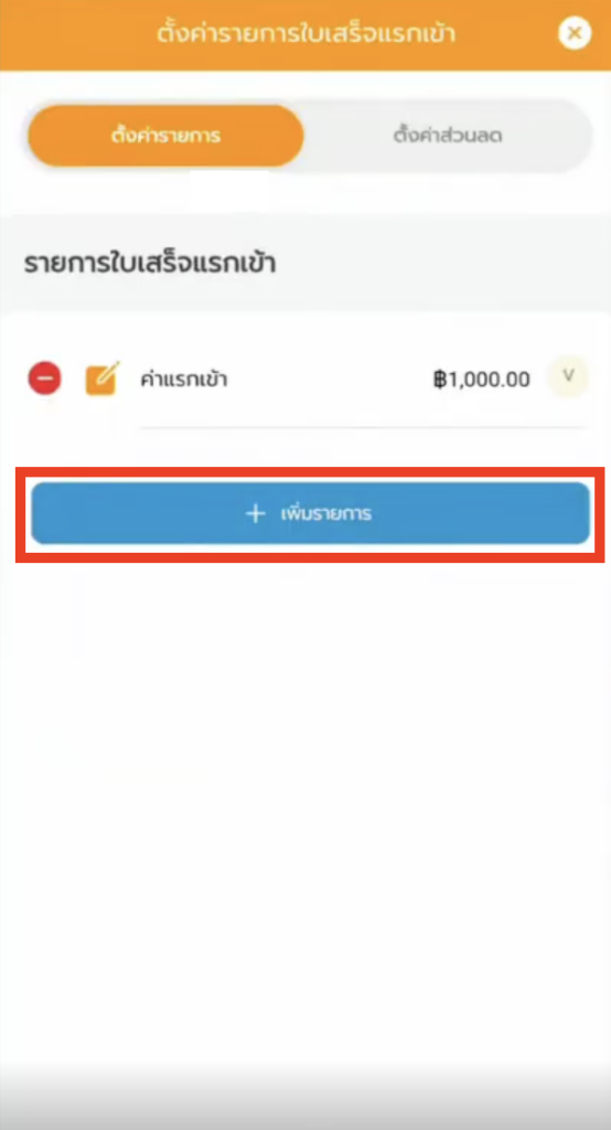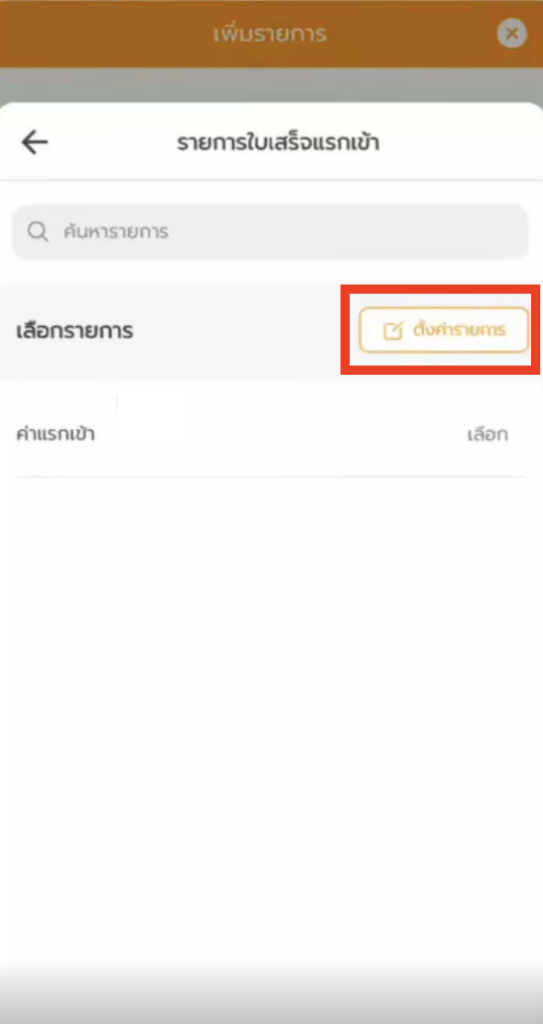 6. กดปุ่ม “+ เพิ่มรายการ” เพื่อกรอกชื่อรายการที่ต้องการตั้งค่า